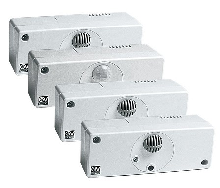 Датчик задымленности и запыленности воздуха C SMOKE автоматически включает, выключает или переключает скорости вентилятора, когда задымленность воздуха в зоне датчика превысит предел, установленный регулятором на корпусе.