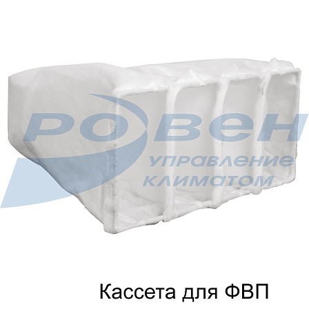 Фильтрующий материал выполнен в виде сменной кассеты с мешочными фильтрами из синтетического волокна и имеет класс очистки EU3. Швы кассеты термически спаяны.