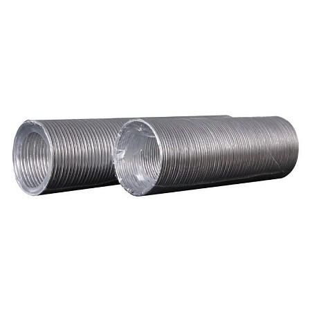 Воздуховоды спирально-навивные. Тип соединения ленты — тройной замок. Рабочая температура: от -30 до +300 ˚С. Максимальная длина в растянутом виде: 3 м. Материал: алюминиевая фольга.
