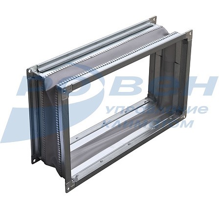 Корпус вставки изготовлен из оцинкованной стали, в середине закреплена тканевая лента, обеспечивающая герметичность канала. Конструкция вставки позволяет крепить её к фланцам вентиляторов с помощью болтов или реечного соединения.